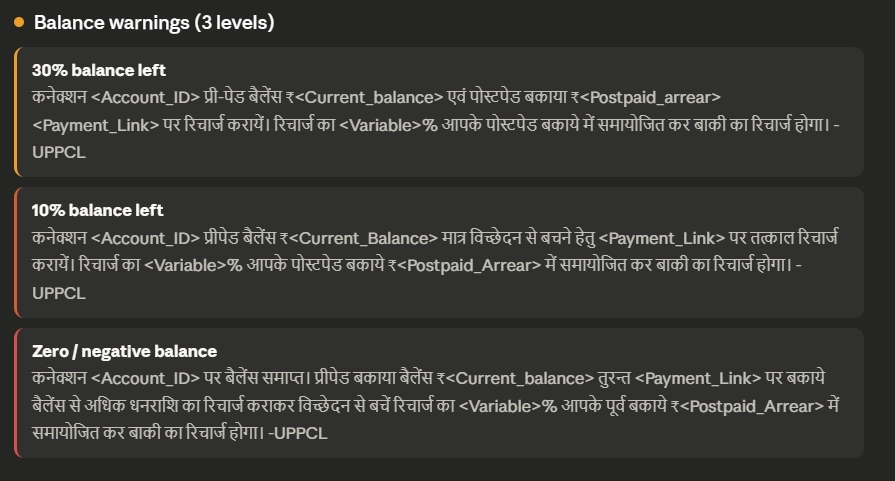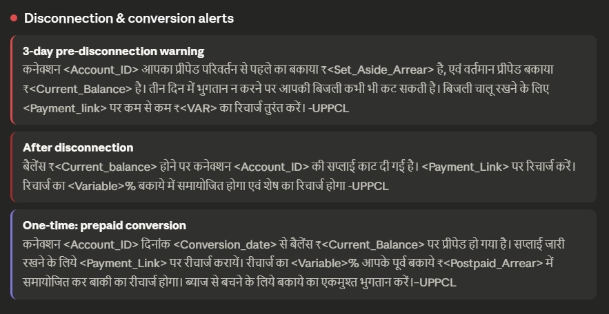 UPPCL हर महत्वपूर्ण स्थिति में आपको अलर्ट भेजता है — सभी हिंदी में। इन्हें समझने से आप घबराहट और अवांछित पावर कट से बच सकते हैं।