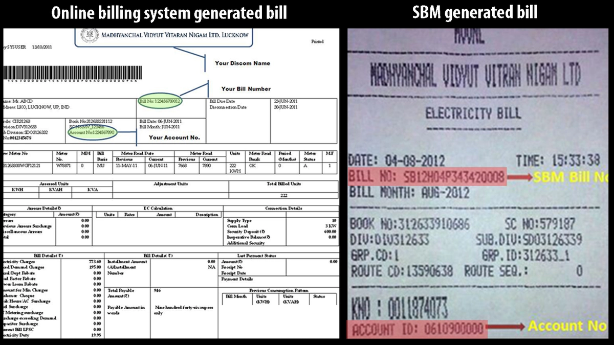 Each electricity bill is generated monthly for every consumer. The Bill Number is a unique identification number assigned by the online billing system. It usually starts with digits from your account number and is printed at the top center of the bill.